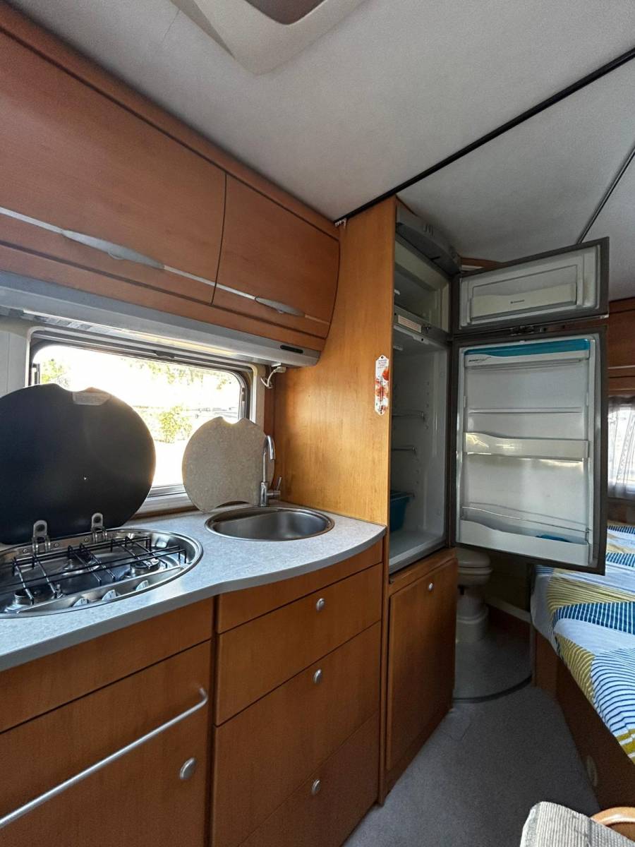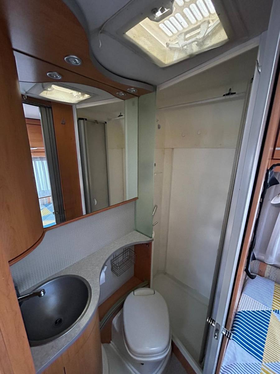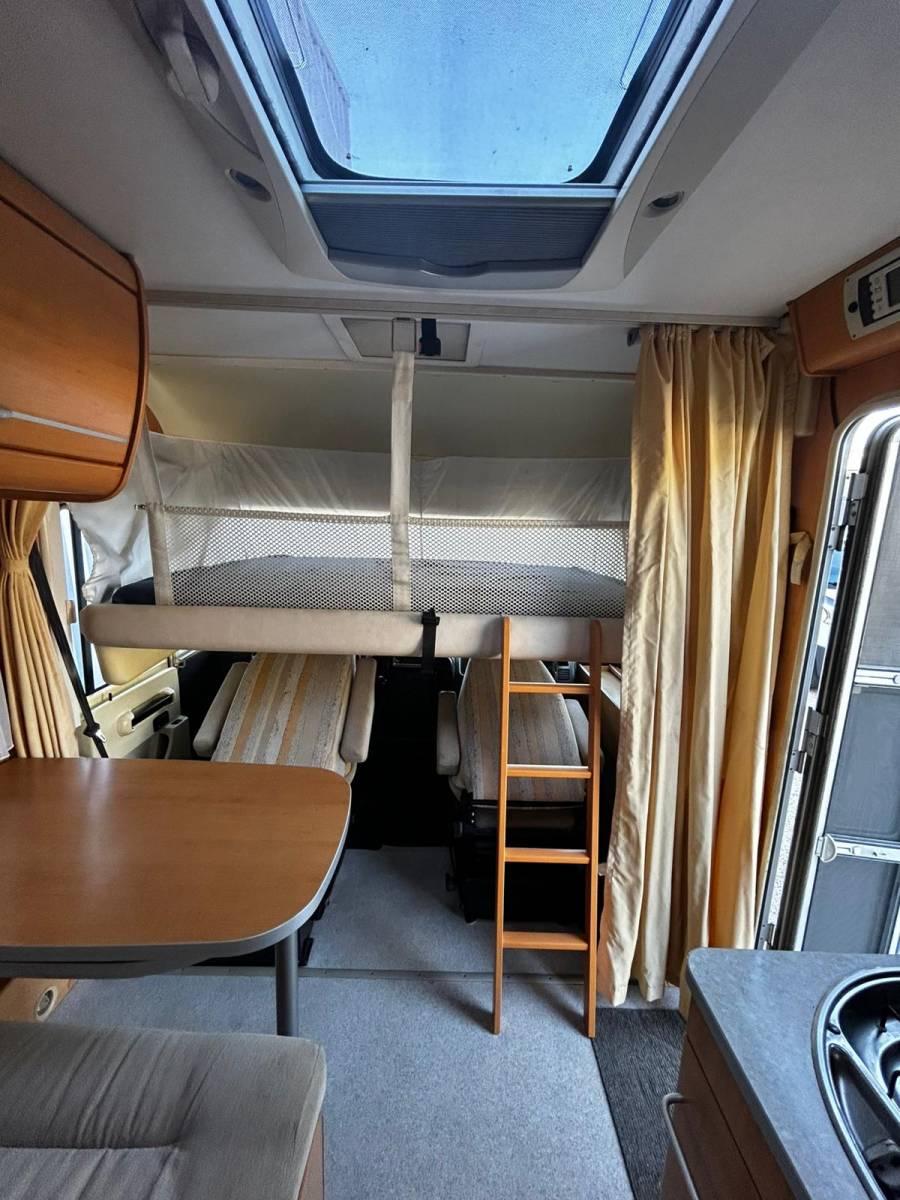 Équipements cellule : - Marche pied électrique - Lit à la française (2 places) - Lit pavillon (2 places) avec filet de sécurité + échelle - 2 sièges pivotants (conducteur et passager) - Réfrigérateur trimixte + congélateur - Store extérieur - Chauffage Truma - Salle de bain avec cabine de douche + toilettes + évier - Grande table (4 places) - TV sur bras rotatif + antenne automatique - Grande soute - Porte-vélos - Nombreux rangements - Cuisine avec évier + plaque au gaz (3feux) - Compartiment à gaz - 2 bouteilles de 13kgs - Fenêtres projetables avec occultant + moustiquaire - Lanterneau 40x40 sur les lits (occultants) - Lanterneau 40x40 dans la salle de bain (moustiquaire) - Lanterneau 80x60 dans le salon (occultant+moustiquaire)