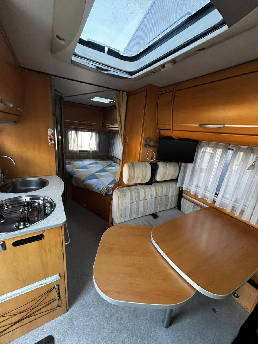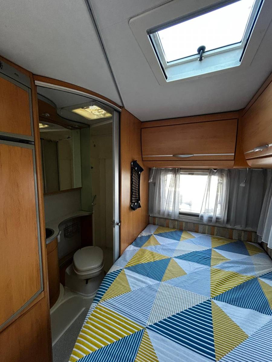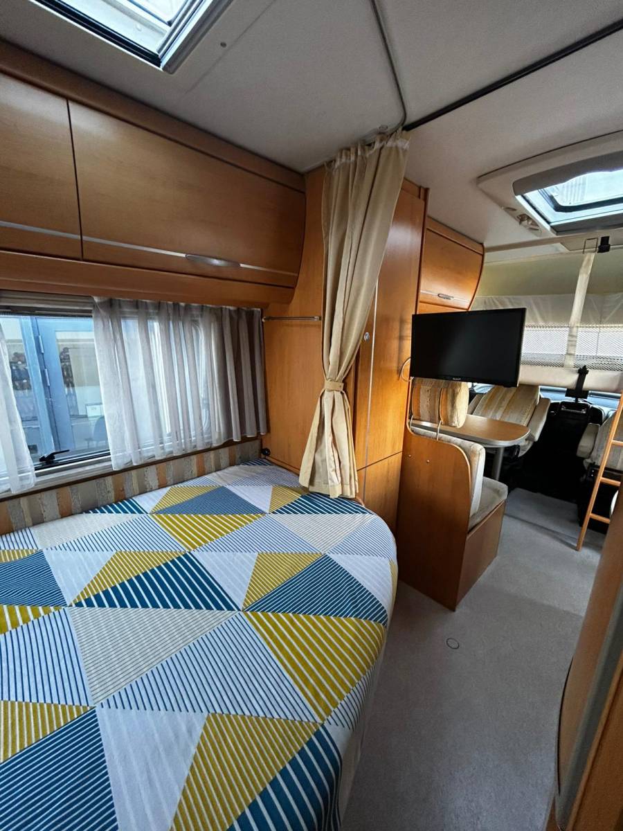 Équipements cellule : - Marche pied électrique - Lit à la française (2 places) - Lit pavillon (2 places) avec filet de sécurité + échelle - 2 sièges pivotants (conducteur et passager) - Réfrigérateur trimixte + congélateur - Store extérieur - Chauffage Truma - Salle de bain avec cabine de douche + toilettes + évier - Grande table (4 places) - TV sur bras rotatif + antenne automatique - Grande soute - Porte-vélos - Nombreux rangements - Cuisine avec évier + plaque au gaz (3feux) - Compartiment à gaz - 2 bouteilles de 13kgs - Fenêtres projetables avec occultant + moustiquaire - Lanterneau 40x40 sur les lits (occultants) - Lanterneau 40x40 dans la salle de bain (moustiquaire) - Lanterneau 80x60 dans le salon (occultant+moustiquaire)