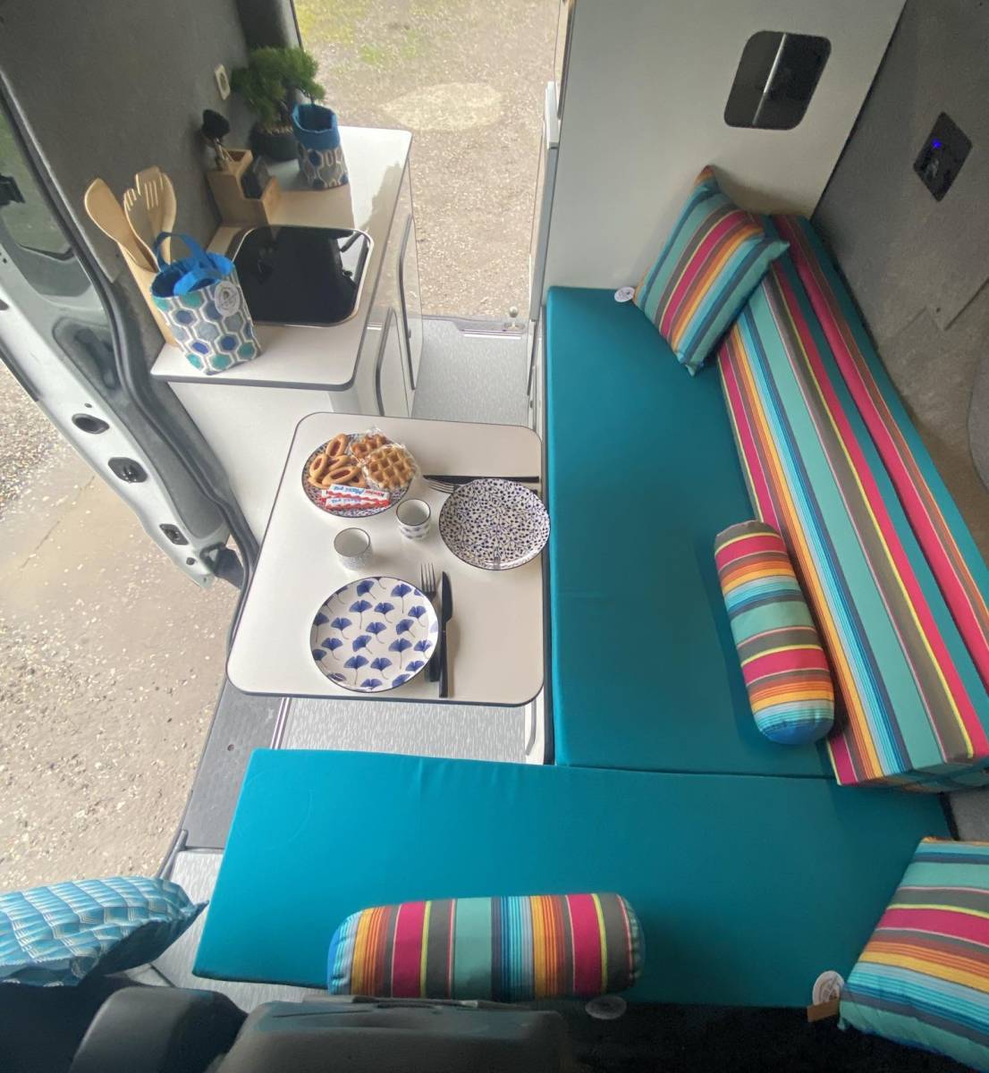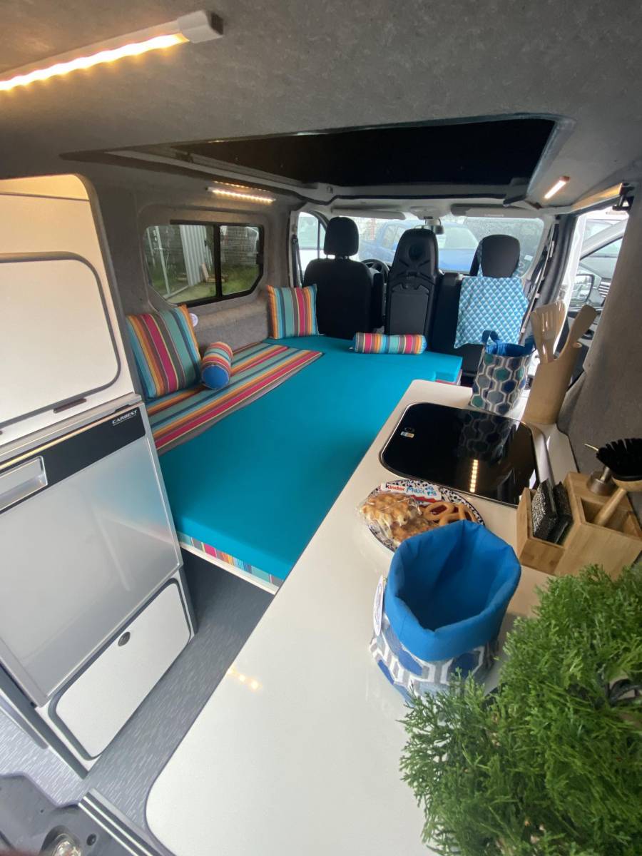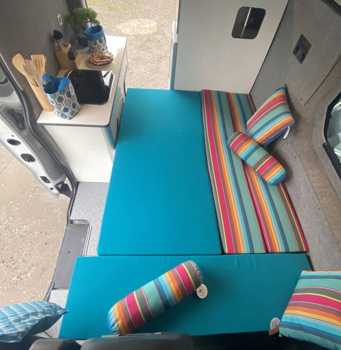 Profitez de vos prochaines vacances et week-ends avec ce van équipé et prêt à partir. Vous bénéficiez d’un véhicule équipé de 4 couchages. 1 couchage 2 places sur la banquette qui se transforme en lit en quelques secondes ainsi que d'un second couchage 2 places dans le toit relevable avec éclairage intégré.