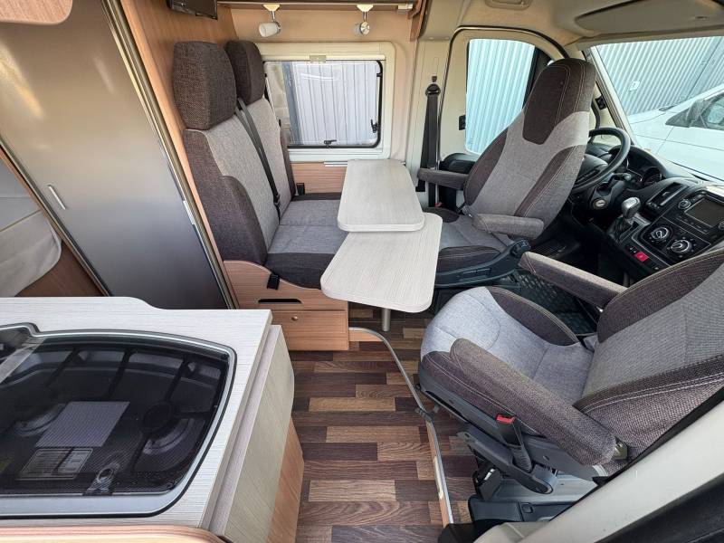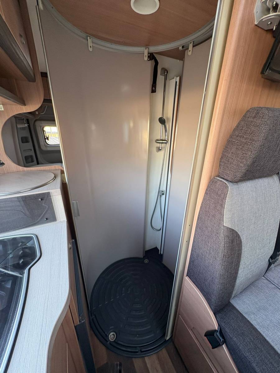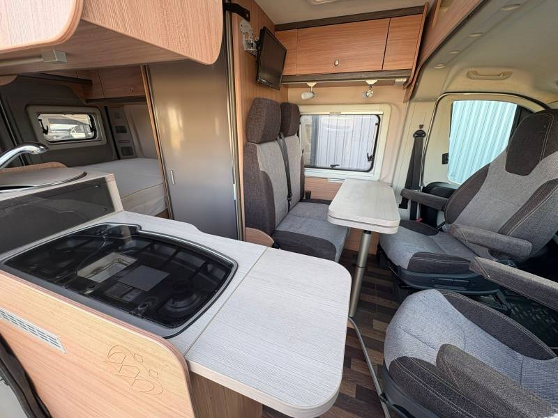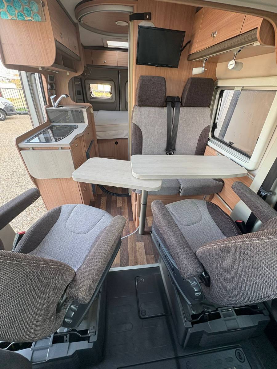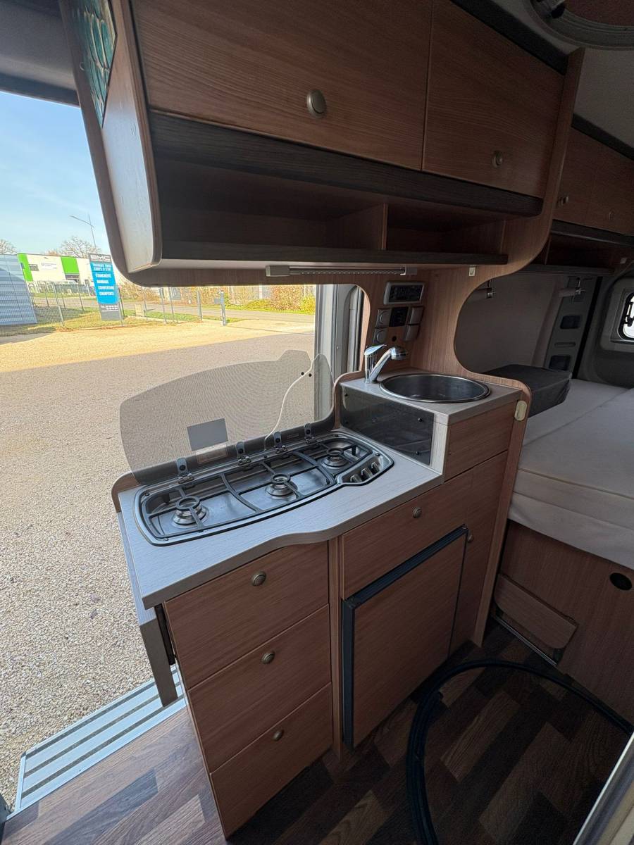 - Marche pied électrique - Lit permanent (2 places) - 2 sièges pivotants (conducteur et passager) - Réfrigérateur trimixte + congélateur - Store extérieur - Chauffage TRUMA - Salle de bain avec cabine de douche + toilettes + évier - Table (4 places) - TV sur bras - Grande soute - Nombreux rangements - Cuisine avec évier + plaque au gaz (2 feux) - Compartiment à gaz - bouteilles de 13kgs - Fenêtres projetables avec occultant + moustiquaire - Lanterneau 40x40 sur les lits (occultants) - Lanterneau 80x60 sur la table (occultant + moustiquaire)