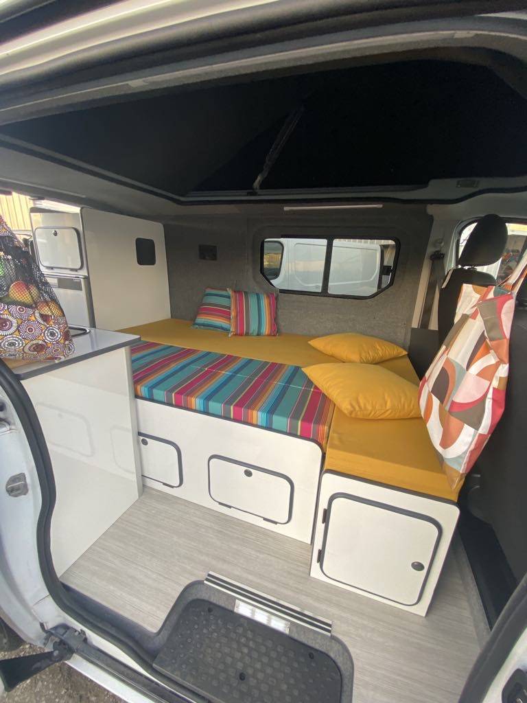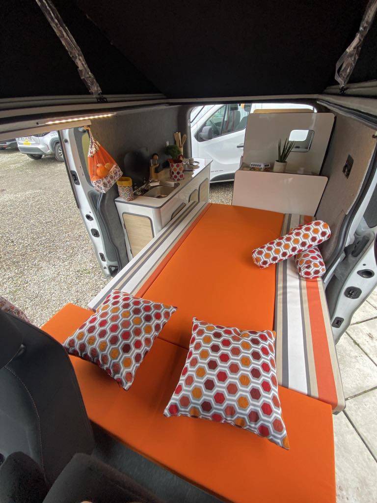 Nos coussins sont découpés sur mesure au véhicule dans de la mousse de 10cm et recouverts d'une housse déhoussable. Nous avons un large choix de colories disponibles suivant vos envies.