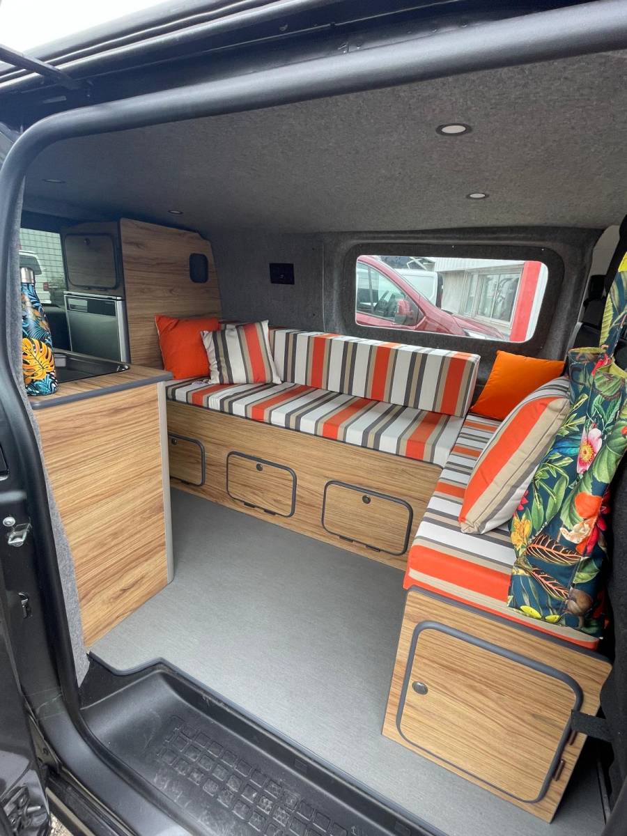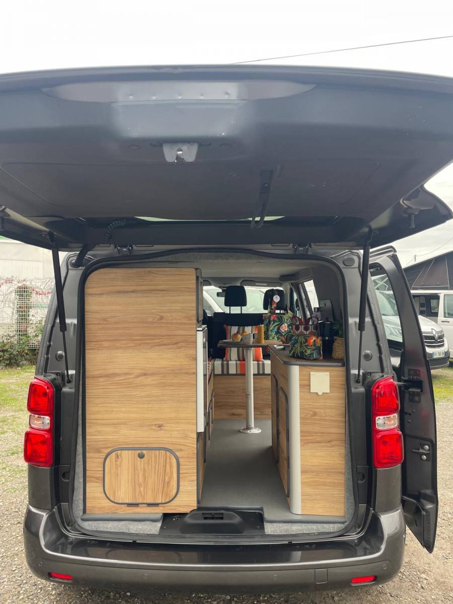 Liberty Van vous présente ce Peugeot Expert, un van au design moderne et simple, idéal pour les aventuriers. Il est équipé d’un pack travel avec un intérieur en bois foncé, accompagné de tissus orange rayés, ce qui lui donne un côté à la fois chaleureux et original.
