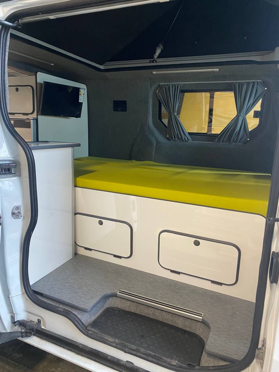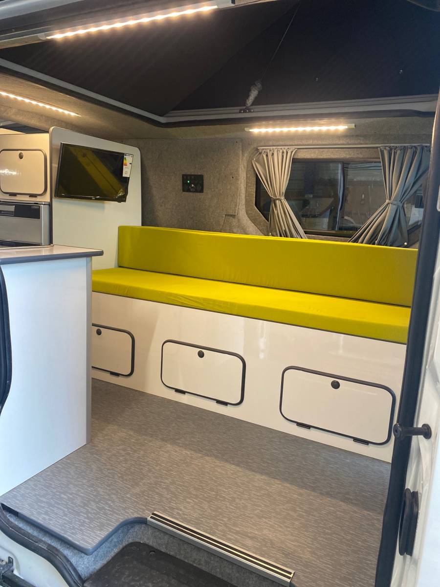 Vous bénéficiez d’un véhicule équipé de 4 couchages. 1 couchage 2 places sur la banquette qui ce transforme en lit en quelques seconde ainsi que d'un second couchage 2 places dans le toit relevable avec éclairage intégré.