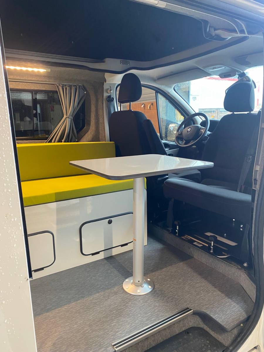 Ce fourgon est aménagé entièrement pour 4 personnes, il mesure 4,89m de long vous pourrez ainsi passer aisément sur toutes les routes! N'attendez plus et appelez nous pour venir essayer notre fourgon aménagé Renault Trafic 3 blanc à Toulouse!