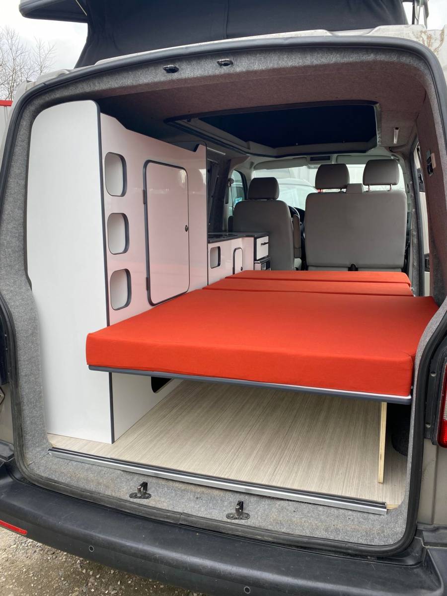 Ce fourgon est aménagé entièrement pour 3 personnes, il mesure 4,89m de long vous pourrez ainsi passer aisément sur toutes les routes! N'attendez plus et appelez nous pour venir essayer notre fourgon aménagé volkswagen T5 à Toulouse!