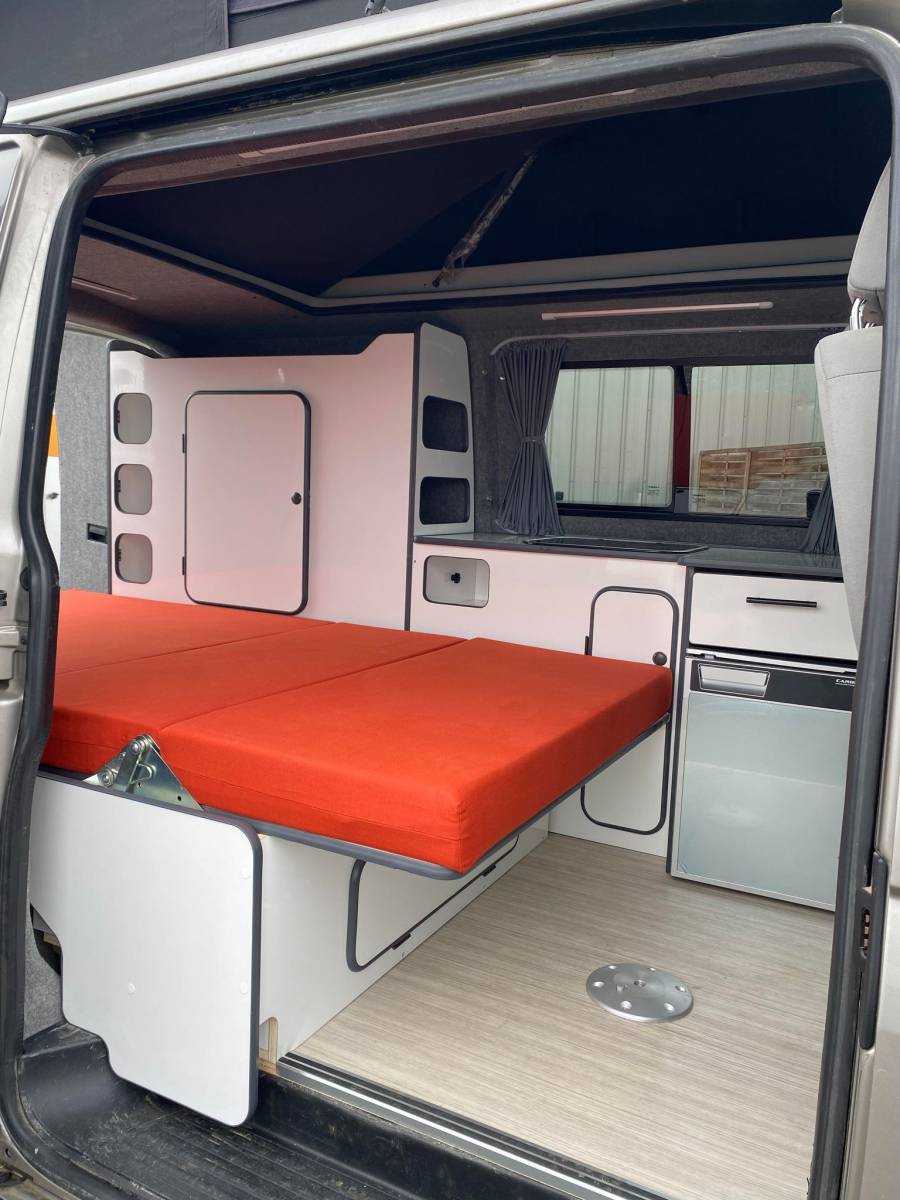 Vous bénéficiez d’un véhicule équipé de 4 couchages. 1 couchage 2 places sur la banquette qui ce transforme en lit en quelques seconde ainsi que d'un second couchage 2 places dans le toit relevable avec éclairage intégré.