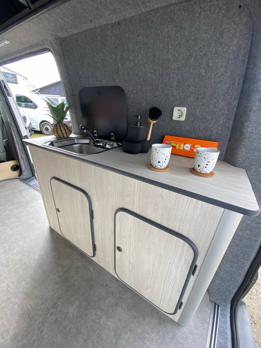 Nous sommes fiers d’avoir transformé ce Volkswagen T5 en un véritable espace de vie mobile.