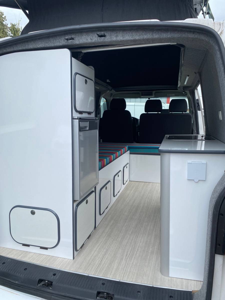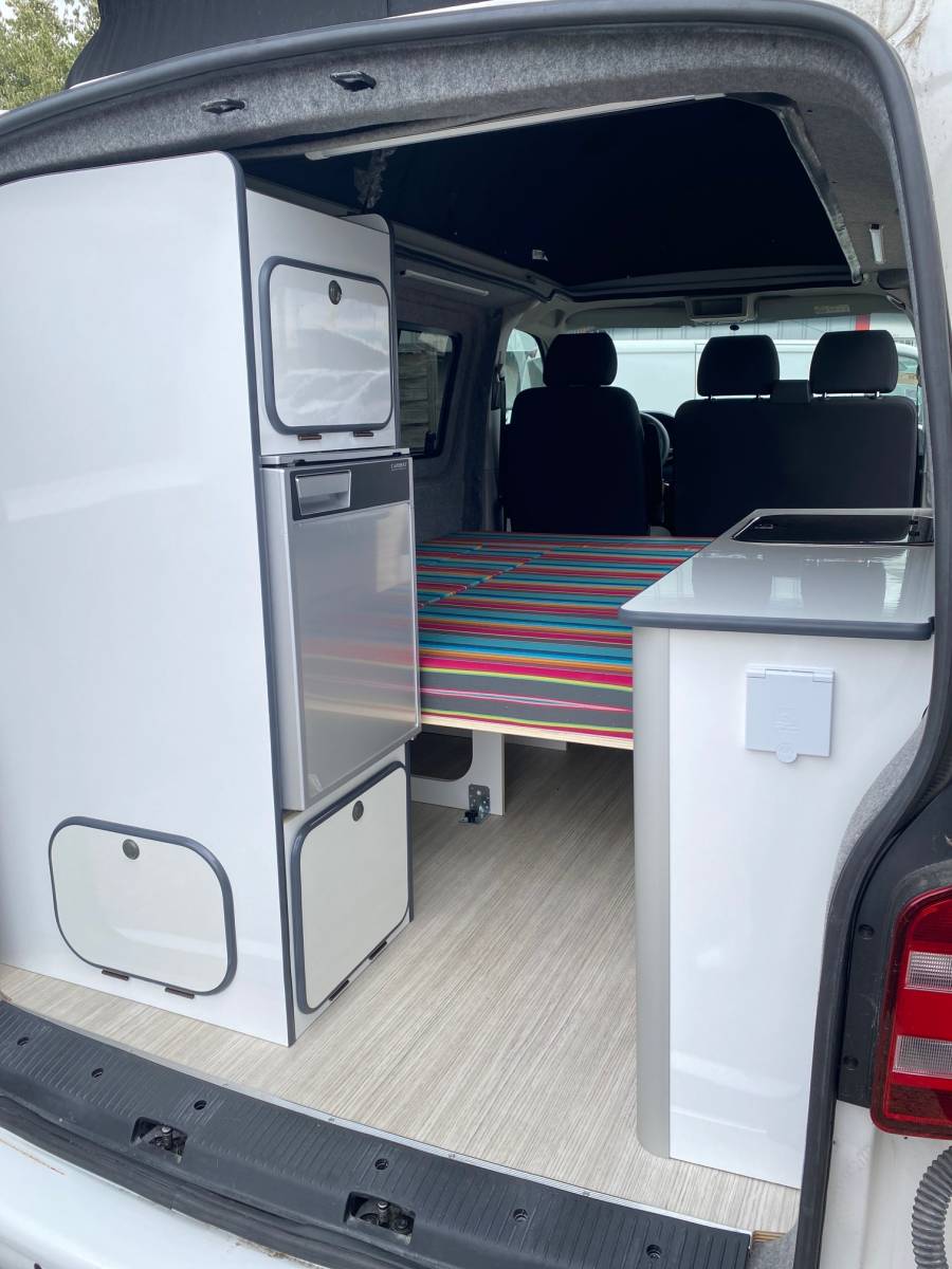 Ce fourgon est aménagé entièrement pour 3 personnes, il mesure 4,89m de long vous pourrez ainsi passer aisément sur toutes les routes! N'attendez plus et appelez nous pour venir essayer notre fourgon aménagé Volkswagen T6 blanc à Toulouse!