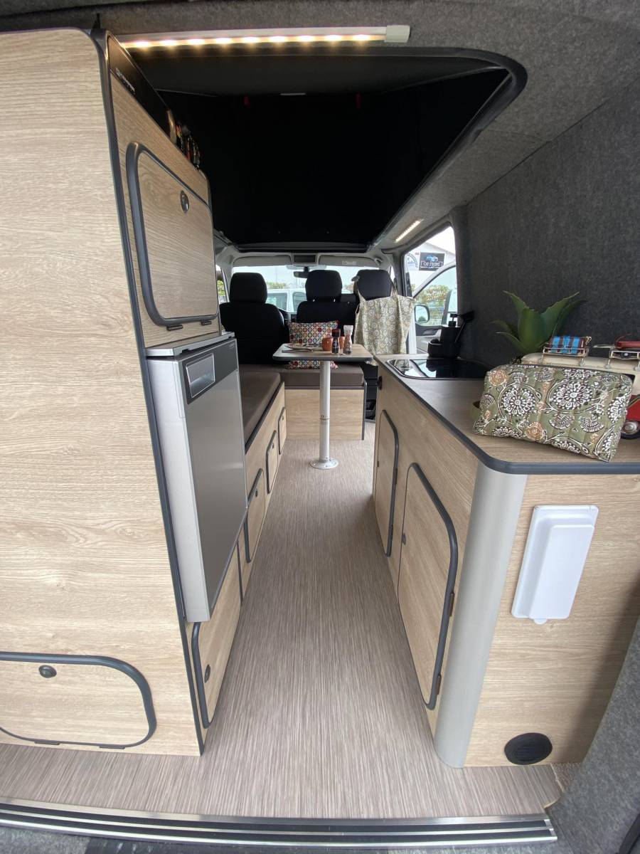 Ce fourgon est aménagé entièrement pour 3 personnes, il mesure 4,89m de long vous pourrez ainsi passer aisément sur toutes les routes! N'attendez plus et appelez nous pour venir essayer notre fourgon aménagé Volkswagen T6 blanc à Toulouse!