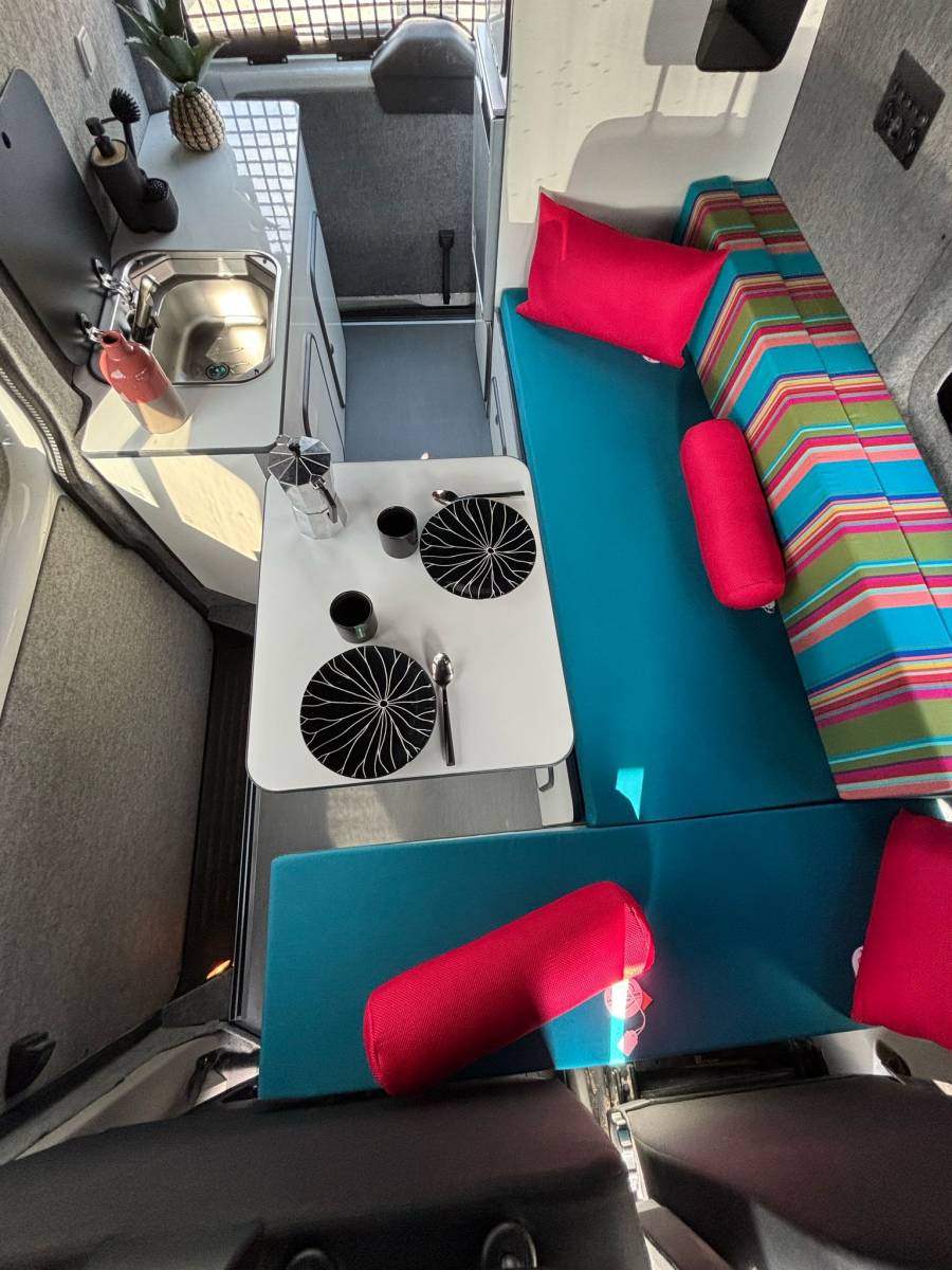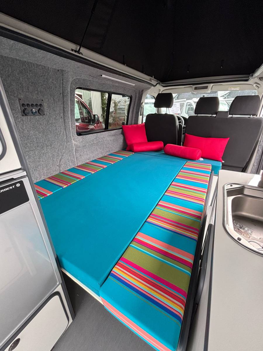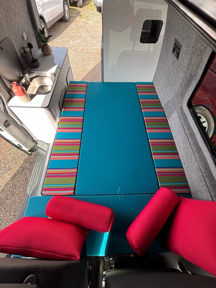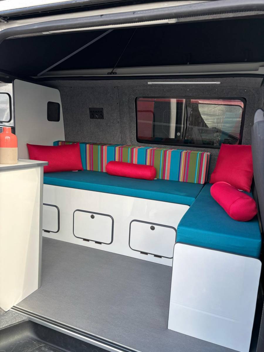 Profitez de vos prochaines vacances et weekends avec ce van équipé et prêt à partir. Vous bénéficiez d’un véhicule équipé de 4 couchages. 1 couchage 2 places sur la banquette qui ce transforme en lit en quelques seconde ainsi que d'un second couchage 2 places dans le toit relevable avec éclairage intégré.